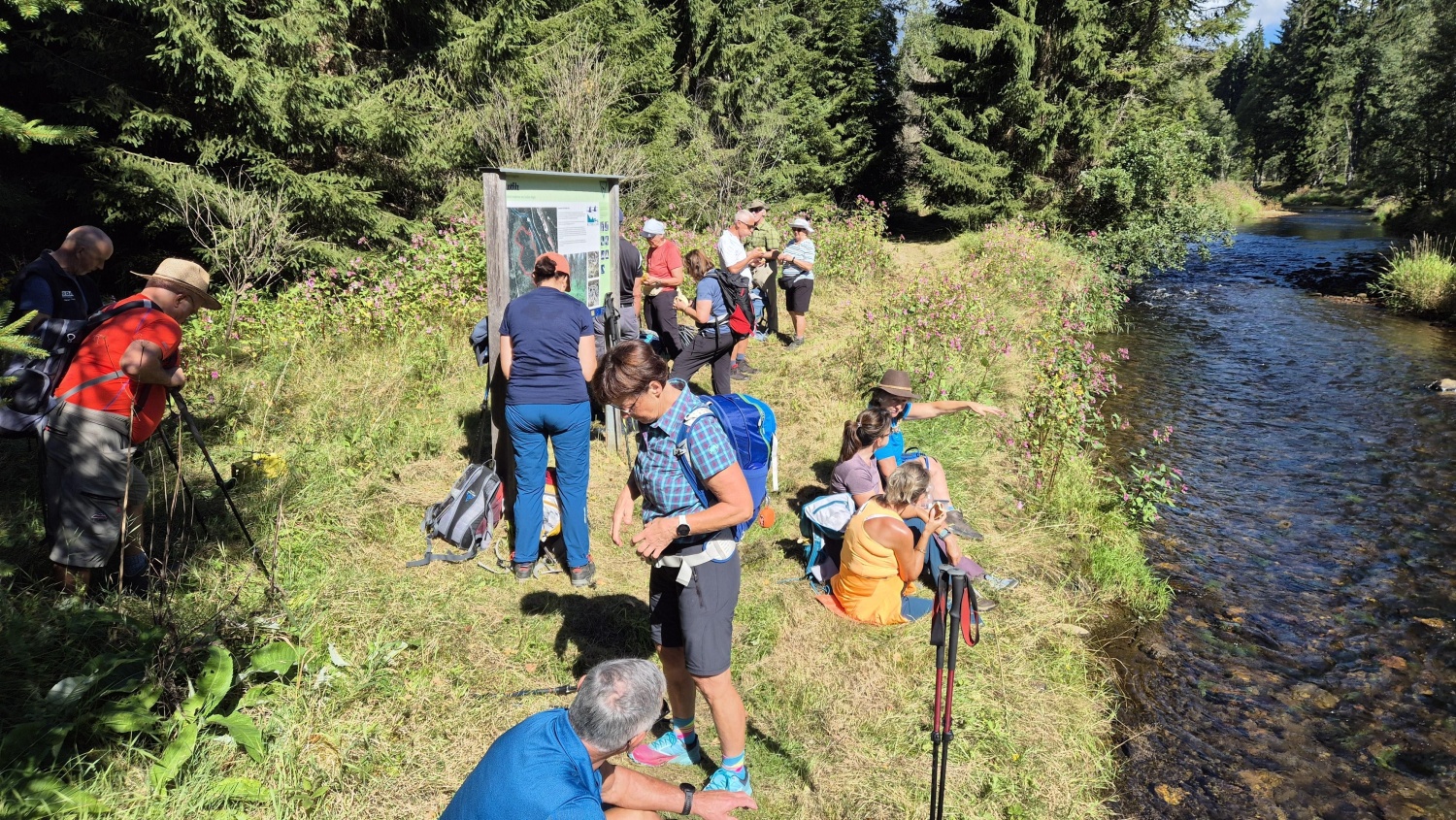 Diese Tour wollten fünfzehn Mitglieder der DAV-Ortsgruppe Freyung unter Leitung von Wanderleiter Lothar Schäfer gemeinsam genießen. Bei bestem Wanderwetter traf sich die Gruppe am Bahnhof Zwiesel. Gut gelaunt starteten die Wanderer direkt zum Flusstal des Großen Regen, der hier mit dem Kleinen Regen zum Schwarzen Regen, dem längsten Fluss des Bayerischen Waldes, zusammenfließt.