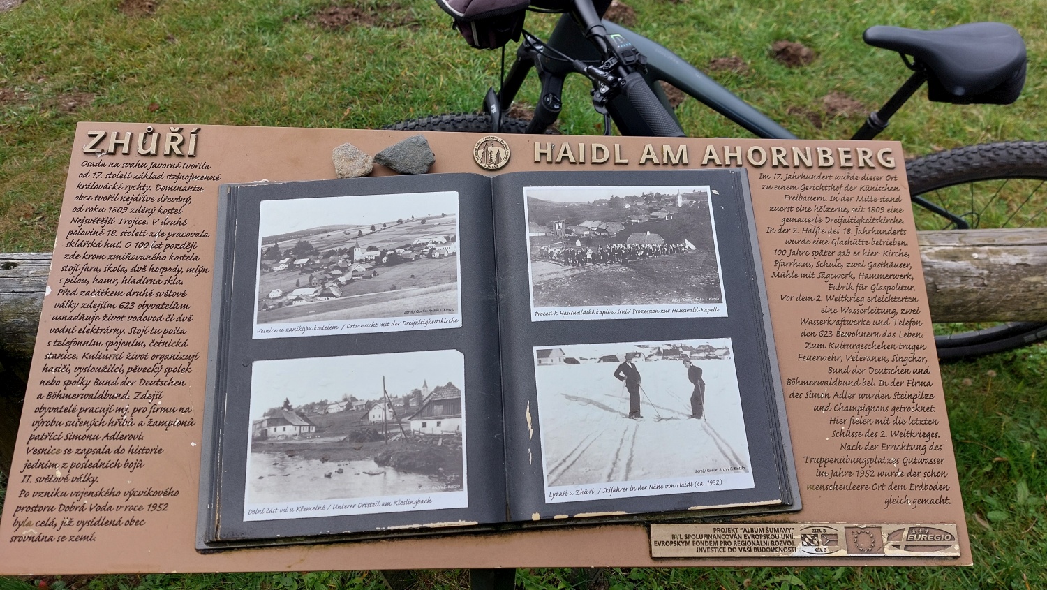 Das Dorf Zhuri (auf deutsch „Haidl“) am Ahornberg (1187 m NN), im Hochtal der Křemelna (Kieslingbach) gelegen, war ab dem 17. Jh. Gerichtshof künischer Freibauern. Vor dem 2. Weltkrieg lebten hier über 600 Bewohner. Es gab Elektrizität und Telefon, Wasserkraftwerke und Waldfrüchtehandel am Platz. Für ein Truppenübungsgelände wurde der schon menschenleere Ort 1952 dem Erdboden gleichgemacht. Heute erinnern das Versöhnungskreuz und die Gedächtniskapelle an das verschwundene Dorf.
