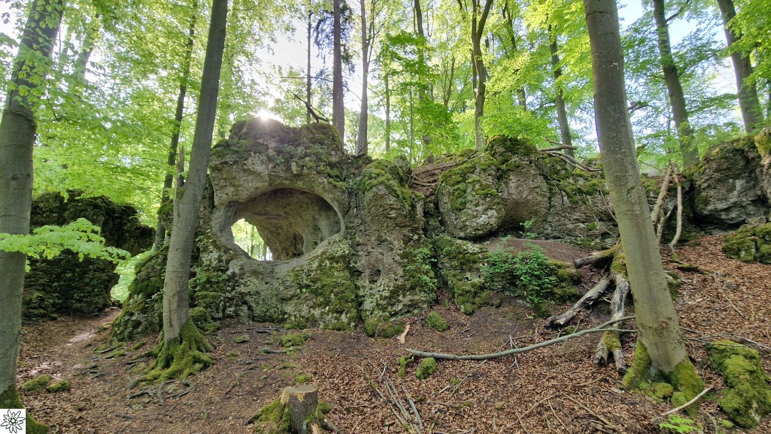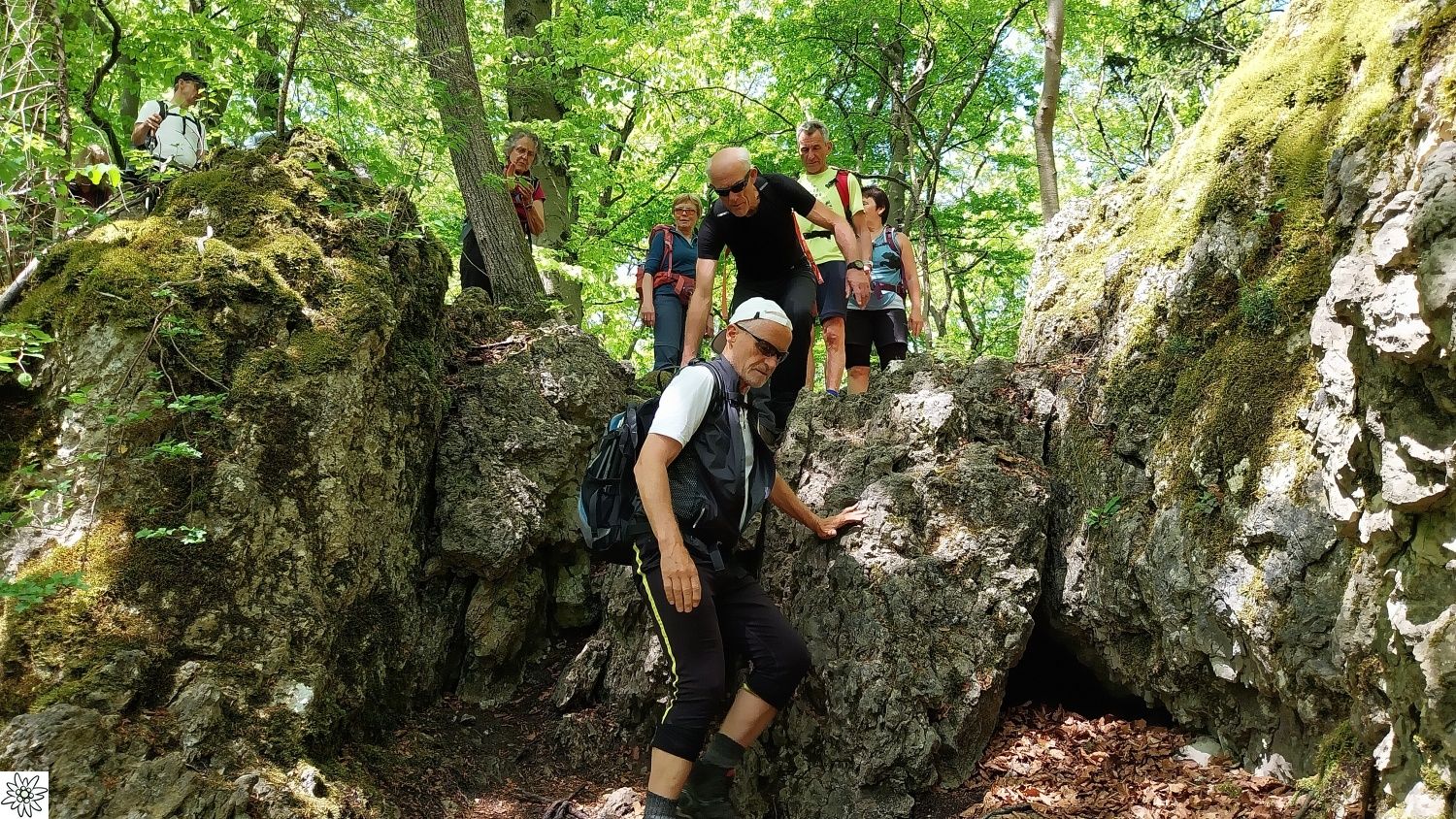 Nach dem Frühstück am zweiten Tag fuhr die Gruppe bei wiederum herrlichem Wetter nach Betzenstein, von wo die erste Wanderung dieses Tages „Rund um Betzenstein“ gestartet wurde. Ca. 500 m nach dem Parkplatz war schon das erste Ziel die Klauskirche, eine 32 m lange Durchgangshöhle erreicht. Durch diese führte der Wanderweg vorbei am Freibad und am Klettergarten zu einem Aussichtspunkt auf die Ortschaft. Das nächste Ziel, das Naturdenkmal Hexentor, ein fast kreisrundesFelsentor, das als keltischer Kraftort gilt, war bald darauf erreicht. Der Weiterweg führte entlang des Badersberges zum Berghäusl, einer Schutzhütte inmitten der Felsenwelt. Auf einem Treppenabstieg vorbei am Friedhof erreichte man durch den Torturm das denkmalgeschützte Ensemble der Altstadt von Betzenstein. Vorbei an der historischen Stadtmauer zweigte der Weg hinauf zum Schmidberg mit dem Aussichtsturm ab, wo man einen herrlichen Blick hinunter in die Ortschaft und zu den beiden Burgen gegenüber hatte. Der Markierung folgend kam die Gruppe vorbei an der Laufer Hütte zur Straße. Nach dem überqueren führte der Weg teils durch Buchenwald, teils am Waldrand auf dem „Pfad der Liebe“ vorbei an beeindruckenden Felslandschaften und entlang einer Siedlung zu einer Dorfstraße. Von hier ging es wieder bergauf zum Aussichtspunkt auf dem „Gerhardfelsen“. Von hier ging es wieder bergab durch einen schönen Laubwald bis zur Straße nach Stierberg, auf der die Gruppe rechts haltend wieder den Parkplatz in Betzenstein erreichte.