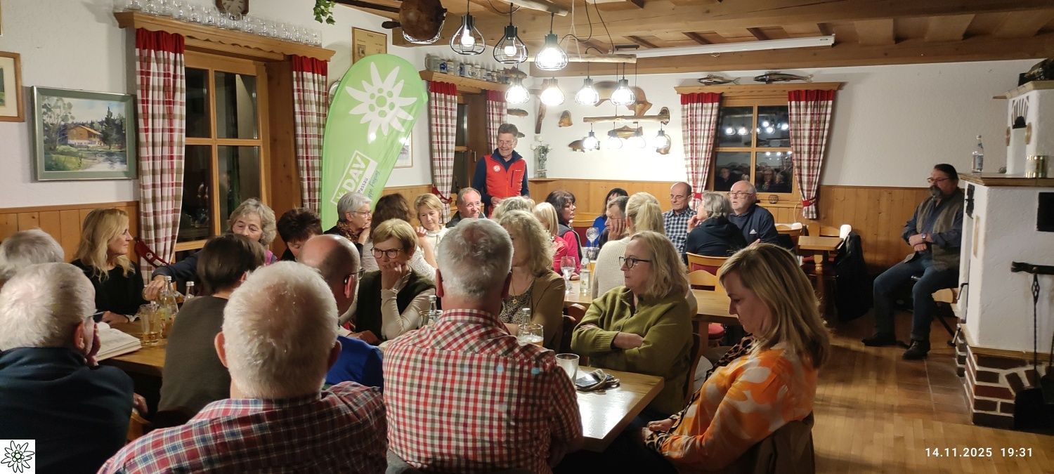 Nach den Herbstwanderungen in den Bergen und im Bayerischen Wald ist es nun schon zur guten Tradition geworden, die Saison mit einem Hüttenabend im Fischerhäusl des Fischereivereines Waldkirchen abzuschließen. Dieser fand dort heuer bereits zum vierten Mal statt. Anstatt des monatlichen Stammtischs im Vereinslokal Brodinger konnte der Vorsitzende der DAV- Ortsgruppe Freyung, Josef Schwaiberger, wieder eine stattliche Anzahl von Mitgliedern aus dem Landkreis Freyung/Grafenau, wie auch aus dem Landkreis Passau, begrüßen. Des Weiteren konnte auch Sepp Haselsteiner begrüßt werden, der, wie gewohnt, mit seiner Gitarre und Gesang für den musikalischen Rahmen sorgte. Der Vorsitzende bedankte sich natürlich auch bei den Aktiven vom Fischereiverein, die mit viel Engagement die Führung des Vereins und auch das Fischerhäusl auf komplett neue Füße gestellt haben – so mancher der Anwesenden konnte sich vom neuen Gebäude mit nagelneuer Küche und einem perfekt gestalteten Außenbereich, sowie den Veränderungen im Gastraum selbst überzeugen. So hat die Mannschaft des Fischervereins die bestellten Fische schon perfekt vorbereitet, da Manfred Eberl seine Anmeldelisten mit Essenswunsch in gewohnter Weise abgeliefert hat. Das bestellte Essen wurde in Buffetform bereitgestellt und die Mannschaft des Fischereivereins bewirtete mit Umsicht und Perfektion. Nach ein paar stimmungsvollen Liedern wurde dann der Nachtisch mit Kaffee und schmackhaften Kuchen vorbereitet – alle gebacken und bereitgestellt von den Mitgliedern. Dafür gab es vom Vorsitzenden ein großes „Vergelt´s Gott“ an die Spender.