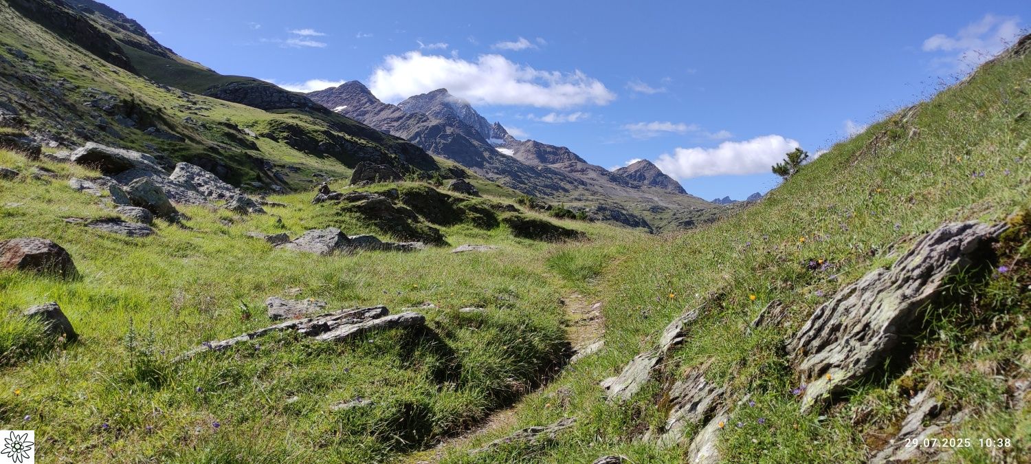 Im Rahmen dieses Projektes hat Hans Donaubauer Wanderleiter der DAV Sektion Passau, Ortsgruppe Freyung, eine 4-tägige Bergtour von Bormio bis zum Gaviapass organisiert. Im 9-Sitzer Bus war schon die Anreise über den Umbrail Pass ein kleines Abenteuer. Gegen Mittag war der Startpunkt oberhalb von Bormio erreicht. Durch märchenhaften Lärchenwald ging es auf dem Pedemontana della Reit hinein in das Valle dello Zebru, am rauschenden Gletscherfluss entlang, bis zur ersten Übernachtungsstation, dem Rifugio Campo auf 2000 m. Eine kleine Almhütte, die von jungen Leuten sehr gut geführt wird.