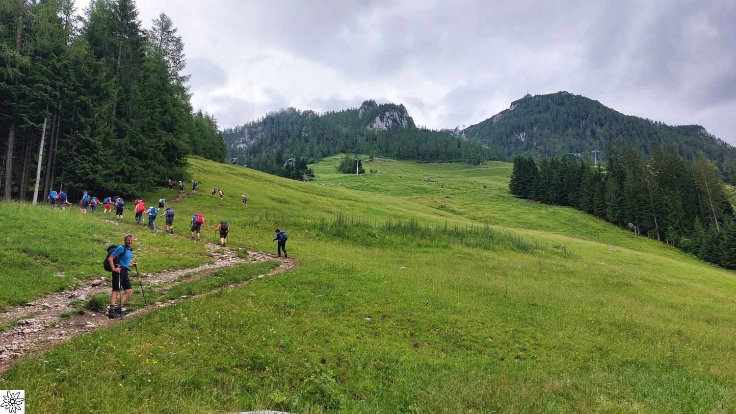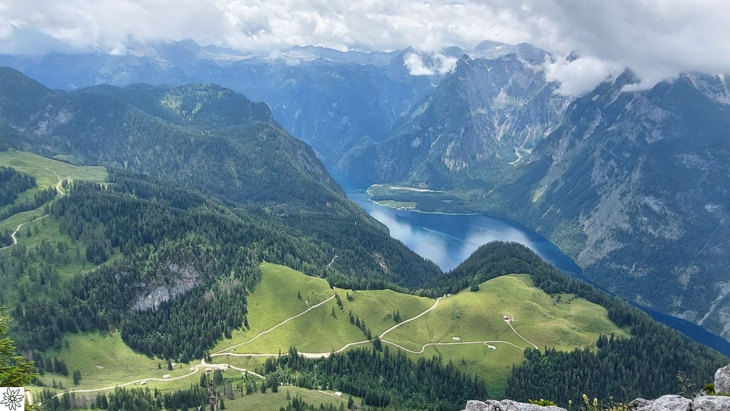 Am nächsten Tag gab es erneut das Angebot, den Abstieg auf unterschiedlichen Routen anzugehen. So ging Rita die „Kleine Reibn“, Hans auf den Schneibstein und dann über das Schneibsteinhaus zurück über die Königsbachalm und Lothar führte seine Teilnehmer über die Königstalalm und Priesbergalm unterhalb des Jenners zurück zum Ausgangspunkt . So hatten alle wunderschöne Wege und Steige, allerdings bei großer Hitze, zu meistern. Josef Schwaiberger hatte eine Abstiegsroute geplant, die über den Pfaffenkegel, dann abwärts über die Krautkaseralm nach Hinterbrand führte und anschließend um den Brandkopf herum in einem wunderschönen schattigen Bachtal bis nach Königssee und dann nach Schönau verlief. Alle Gruppen kamen pünktlich zu den vereinbarten Abfahrtsorten und Abfahrtszeiten an, so dass noch genügend Zeit blieb, sich von der jeweiligen Tour kurz zu erholen und z.B. die verschwitzte Kleidung zu wechseln. Pünktlich waren dann alle zur Abfahrt bereit, auch der Fahrer war gut erholt für die Rückfahrt und so ging es dann gut gelaunt mit interessantem Meinungsaustausch und regen Diskussionen über die unterschiedlichen Routen und Erlebnissen dieser beiden besonderen Wandertage wieder über Marktschellenberg und Salzburg zurück nach Passau, Waldkirchen und Freyung.