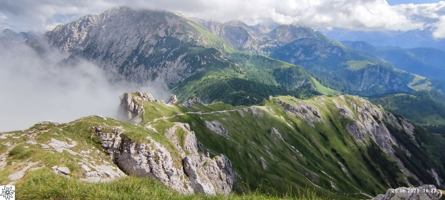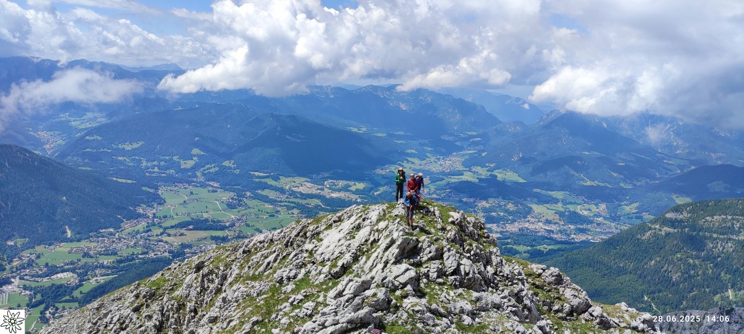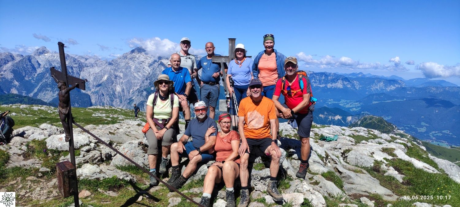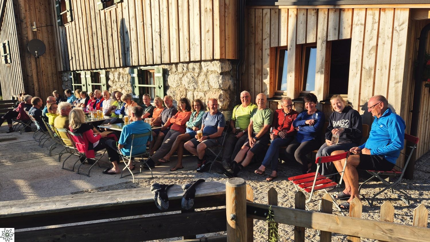 Bereits im Sommer 2024 begannen die Planungen für die zweitägige Jubiläumstour aus Anlass des 55-jährigen Bestehens der DAV- Ortsgruppe Freyung, welche am 10. Juni 1970 im Hotel zur Post in Freyung gegründet wurde. 55 Mitglieder bekamen die Möglichkeit, auf verschiedenen Routen ein gemeinsames Ziel zu erwandern: das Schneibsteinhaus in den Berchtesgadener Bergen. Diese Teilnehmerzahl war rasch erreicht und die detaillierten Planungen für diesen besonderen Ausflug konnten beginnen. Am letzten Juniwochenende war es dann so weit! Mit einem komfortablen Reisebus der Fa. Prager, Freyung, ging die Fahrt über Salzburg nach Hinterbrand bei Berchtesgaden. Auf etwa 1100 m Seehöhe begann dann nach Komplettierung der Ausrüstung der Aufstieg in Richtung „Schneibsteinhaus“. Die teilnehmenden Tourenleiter der Ortsgruppe haben sich im Vorfeld verständigt, dass jeder eine andere, mehr oder weniger anspruchsvolle Route für den Aufstieg plant und anbietet, damit dann der Start am Samstag reibungslos von statten geht. So ging Hans Donaubauer mit seiner Gruppe über die Brettgabel des Göllstockes und zurück über das Hohe Brett (2340m), Lothar Schäfer über die Königsbergalm und Rita Gell über die Mitterkaseralm den direkten Weg zur Hütte.