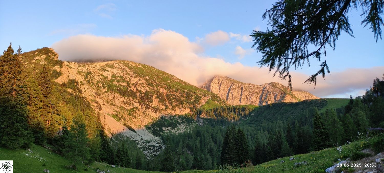 Nach Anmeldung bzw. kurzem Aufenthalt auf der Hütte, teilten sich die Teilnehmer erneut auf. Manche gingen auf den Gipfel des Jenner (1874 m) und andere auf den Pfaffenkegel (1850 m) und wieder andere folgten dem Weg zum Schneibsteingipfel. Als dann die Zeit schon fortgeschritten war, kamen alle wieder zurück, um das herrliche Wetter mit Sonnenschein und angenehmen Temperaturen auf der Terrasse noch kurz zu genießen, bevor dann gegen 18.00 Uhr der Hüttenwirt Stefan seine Gäste zum Abendessen rief. Bei Vorspeise und wunderschön angerichtetem Buffet konnten sich die Mitglieder der Ortsgruppe hervorragend und ausgiebig bedienen, bevor dann die Nachspeise noch serviert wurde. Am Abend des ersten Tages konnten alle auf der Terrasse die umliegenden Gipfel bis hin zum Watzmann und die Täler mit ihren Almen um die Hütten bestaunen und einen wunderbaren und kurzweiligen Abend genießen, bevor dann Zeit war für die Hüttenruhe.