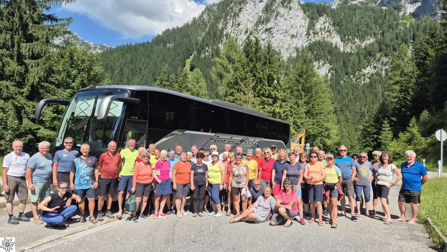 Bereits im Sommer 2024 begannen die Planungen für die zweitägige Jubiläumstour aus Anlass des 55-jährigen Bestehens der DAV- Ortsgruppe Freyung, welche am 10. Juni 1970 im Hotel zur Post in Freyung gegründet wurde. 55 Mitglieder bekamen die Möglichkeit, auf verschiedenen Routen ein gemeinsames Ziel zu erwandern: das Schneibsteinhaus in den Berchtesgadener Bergen. Diese Teilnehmerzahl war rasch erreicht und die detaillierten Planungen für diesen besonderen Ausflug konnten beginnen. Am letzten Juniwochenende war es dann so weit! Mit einem komfortablen Reisebus der Fa. Prager, Freyung, ging die Fahrt über Salzburg nach Hinterbrand bei Berchtesgaden. Auf etwa 1100 m Seehöhe begann dann nach Komplettierung der Ausrüstung der Aufstieg in Richtung „Schneibsteinhaus“. Die teilnehmenden Tourenleiter der Ortsgruppe haben sich im Vorfeld verständigt, dass jeder eine andere, mehr oder weniger anspruchsvolle Route für den Aufstieg plant und anbietet, damit dann der Start am Samstag reibungslos von statten geht. So ging Hans Donaubauer mit seiner Gruppe über die Brettgabel des Göllstockes und zurück über das Hohe Brett (2340m), Lothar Schäfer über die Königsbergalm und Rita Gell über die Mitterkaseralm den direkten Weg zur Hütte.