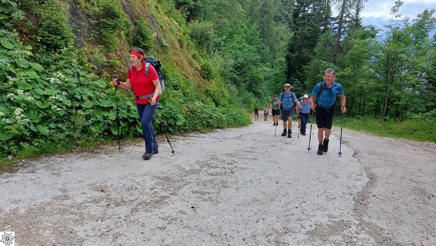 Am nächsten Tag gab es erneut das Angebot, den Abstieg auf unterschiedlichen Routen anzugehen. So ging Rita die „Kleine Reibn“, Hans auf den Schneibstein und dann über das Schneibsteinhaus zurück über die Königsbachalm und Lothar führte seine Teilnehmer über die Königstalalm und Priesbergalm unterhalb des Jenners zurück zum Ausgangspunkt . So hatten alle wunderschöne Wege und Steige, allerdings bei großer Hitze, zu meistern. Josef Schwaiberger hatte eine Abstiegsroute geplant, die über den Pfaffenkegel, dann abwärts über die Krautkaseralm nach Hinterbrand führte und anschließend um den Brandkopf herum in einem wunderschönen schattigen Bachtal bis nach Königssee und dann nach Schönau verlief. Alle Gruppen kamen pünktlich zu den vereinbarten Abfahrtsorten und Abfahrtszeiten an, so dass noch genügend Zeit blieb, sich von der jeweiligen Tour kurz zu erholen und z.B. die verschwitzte Kleidung zu wechseln. Pünktlich waren dann alle zur Abfahrt bereit, auch der Fahrer war gut erholt für die Rückfahrt und so ging es dann gut gelaunt mit interessantem Meinungsaustausch und regen Diskussionen über die unterschiedlichen Routen und Erlebnissen dieser beiden besonderen Wandertage wieder über Marktschellenberg und Salzburg zurück nach Passau, Waldkirchen und Freyung.