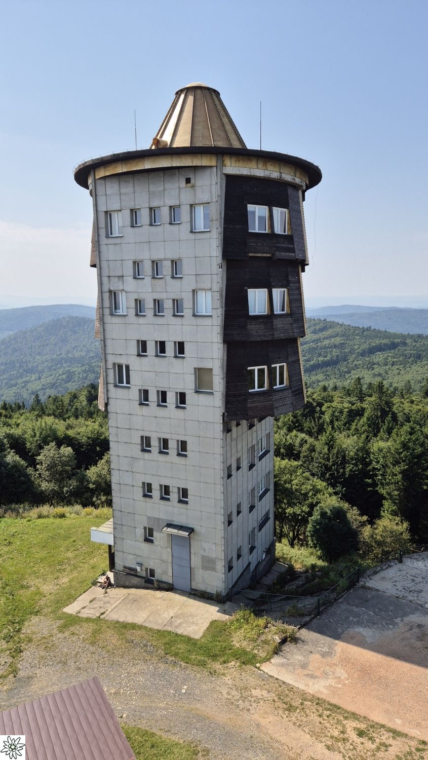 Die Teilnehmer starteten in Fahrgemeinschaften ab dem Parkplatz Brodinger in Freyung nach Furth im Wald. Ausgangspunkt dort war ein Parkplatz in der Nähe des Stadtzentrums. Die sieben E-Bike Fahrer komplettierten ihre Ausrüstung und schon ging es los, noch kurz durch die Stadt und dann über freies Feld, vorbei am Vogelherd auf 508 m Höhe, stets bergauf in Richtung Grenze und dem Tagesziel. Nach kurzem und anstrengendem Weg auf der Bundesstraße CHA40, ging die Fahrt vorbei am Schloss in Richtung Voitenberg, bis dann die Skipisten und Lifttrassen auf dem Dreiwappenweg gequert wurden. Immer in lichtem Wald, hinauf zum Brombeerriegel, wurde dann die Wappentafel „Drei Wappen“ (Churfürstentum Bayern – Königreich Böhmen – Herzogtum Pfalz) erreicht, wo der Weg in einen Waldsteig überging, der von allen Teilnehmern meisterhaft bewältigt wurde. Nun führte die Route weiter auf einer Forststraße, um den „Smrci“ mit 939 m Höhe herum, bis dann die Bendahütte (Waldhütte unter dem Brunnhäusl) erreicht war. Kurz vor „Halinova hora“, einer aufgelassenen Kaserne aus der Zeit des „Kalten Krieges“ führte eine Panzerstraße mit massiven Beton- Spurplatten, vorbei am Karel-Dvorak-Denkmal, hinauf zum Tagesziel, den 1042 m hohen Cerchov, der bis in die 1990er Jahre intensiv als Aufklärungsstation von der tschechoslowakischen Armee genutzt wurde. Neben dem 1904 als Aussichtsturm errichteten Kurz-Turm (benannt nach seinem Erbauer, seit 2000 wieder zugänglich), wurde 1987 durch die Armee ein zweiter, größerer Turm errichtet, der heute noch Flugsicherungszwecken dient und nicht zugänglich ist.