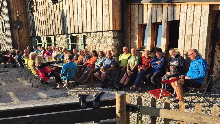 Nach Anmeldung bzw. kurzem Aufenthalt auf der Hütte, teilten sich die Teilnehmer erneut auf. Manche gingen auf den Gipfel des Jenner (1874 m) und andere auf den Pfaffenkegel (1850 m) und wieder andere folgten dem Weg zum Schneibsteingipfel. Als dann die Zeit schon fortgeschritten war, kamen alle wieder zurück, um das herrliche Wetter mit Sonnenschein und angenehmen Temperaturen auf der Terrasse noch kurz zu genießen, bevor dann gegen 18.00 Uhr der Hüttenwirt Stefan seine Gäste zum Abendessen rief. Bei Vorspeise und wunderschön angerichtetem Buffet konnten sich die Mitglieder der Ortsgruppe hervorragend und ausgiebig bedienen, bevor dann die Nachspeise noch serviert wurde.