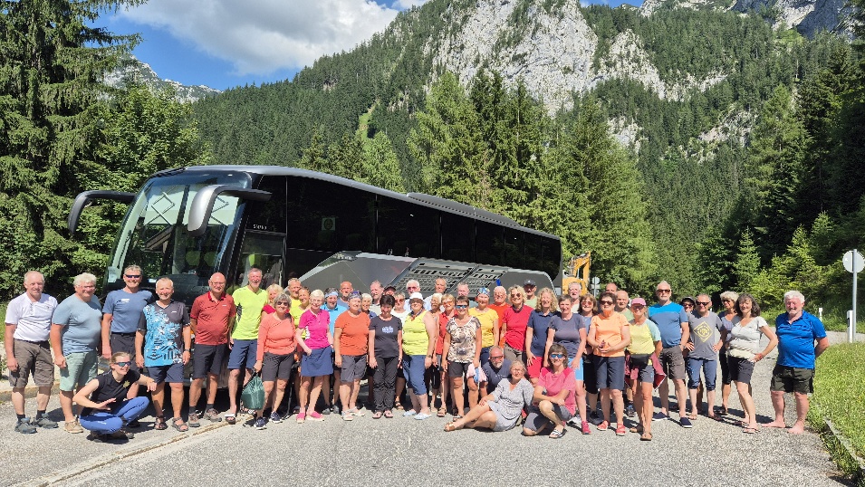 Diese Teilnehmerzahl war rasch erreicht und die detaillierten Planungen für diesen besonderen Ausflug konnten beginnen. Am letzten Juniwochenende war es dann so weit! Mit einem komfortablen Reisebus der Fa. Prager, Freyung, ging die Fahrt über Salzburg nach Hinterbrand bei Berchtesgaden. Auf etwa 1100 m Seehöhe begann dann nach Komplettierung der Ausrüstung der Aufstieg zum Schneibsteinhaus.